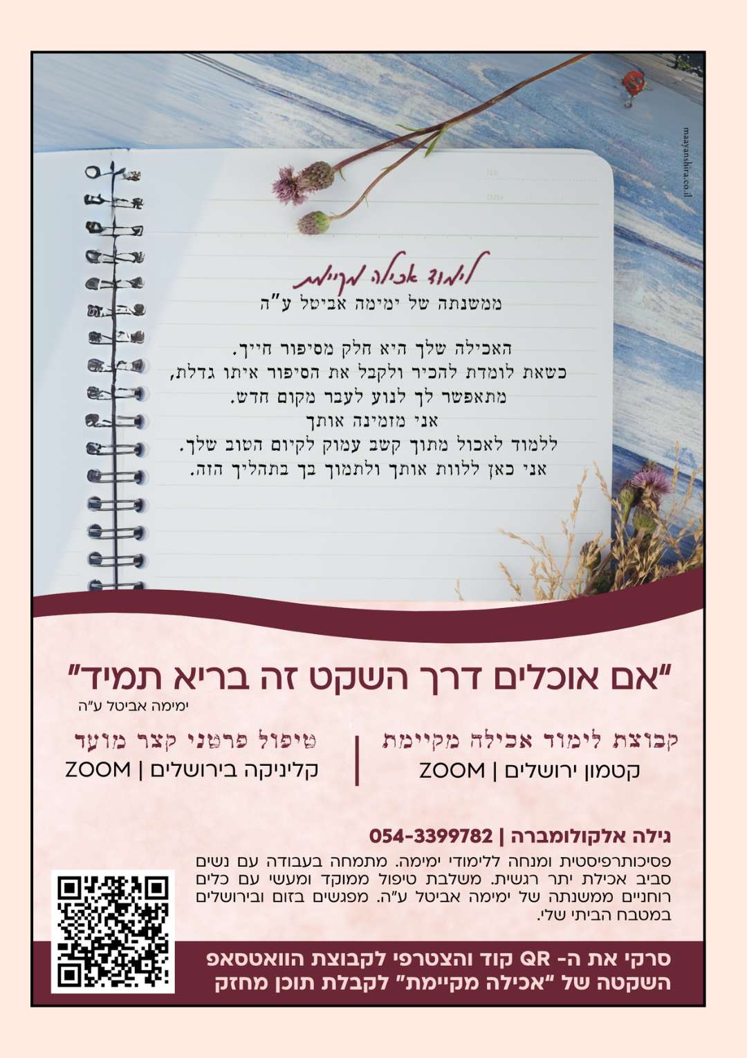 ובניית קונספט מקיף המשלב קבוצת לימוד בהשראת ימימה לצד הרצאות מקצועיות לדיאטנים ולאנשי טיפול.